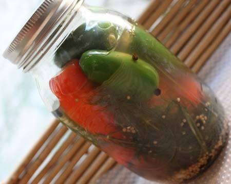 Use these spicy peppers chopped up in guacamole, with scrambled eggs, on top of tacos, or in sandwiches. (I'm sure you can come up with other creative ways to use them as well.) If you like things spicy, then this is a great ingredient to have on hand in your refrigerator. It takes ten minutes to make and then it just needs to sit unwatched in the refrigerator for 24 hours. You can also make this with other types of chile peppers and slice them into rounds intead of keeping them whole. Click here to see more pickling recipes and tips.
