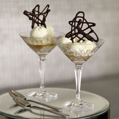 Making these edible decorations is crazy easy: You're just melting chocolate in the microwave, letting it cool a bit, and then squeezing it into fun shapes on parchment paper. A couple hours in the freezer and you've got an artsy accessory to transform even the simplest of desserts into a stone-cold, sexy treat. Feel free to use your favorite ice cream flavor, and for extra-frosty fabulousness, freeze martini or rocks glasses for serving. At the table, add a splash of Amaretto or a drizzle of my Homemade Cherry Syrup for another layer of festive flavor. (Photo courtesy of William Geddes)