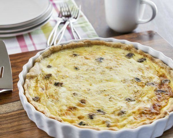 Quiche is a savory French pastry, served in a pie crust and filled with egg custard and optional cheese, meat, seafood, or vegetables. It can be served hot or cold, making it a great make-ahead dish. Quiche is a popular brunch dish but also works well for picnics, lunches, and dinners.