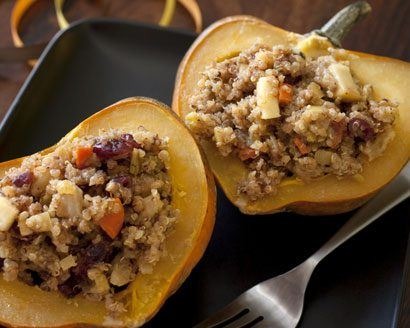 Nothing screams fall more than acorn squashes, and when they're stuffed with other seasonal ingredients like mushrooms, chickpeas, cranberries, and pumpkin seeds, they become a delicious cold-weather dish. This recipe uses quinoa as a base for the stuffing and adds unique ingredients like cilantro to create flavor unlike any other.