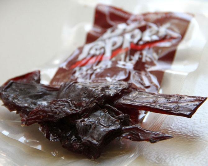 Another flavoring approach involves the use of unconventional marinades on conventional beef jerky. Guarana- and caffeine-marinated jerky for extra energy (Perky Jerky)? Soda as meat marinade? Yup, there's a surprisingly good Dr Pepper beef jerky. There are international approaches to jerky you may not be familiar with: Chinatown beef jerky, South African jerky, Italian, and Ethiopian jerky. There's upscale beef jerky, gourmet jerky, and jerky that's been shredded to resemble chewing tobacco, and of course, there's the exotic jerky market — jerkies made with wild boar, ostrich, and alligator. Check them out in this slideshow.