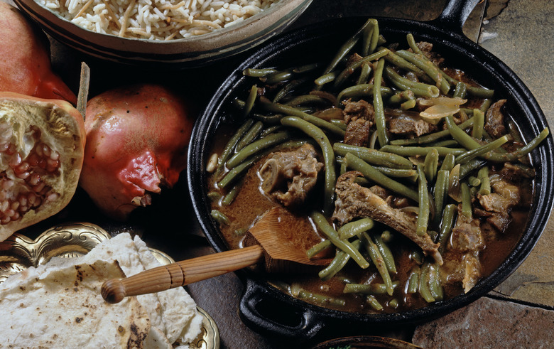 In this hearty stew recipe, boneless lamb cubes are seasoned with salt, pepper and cinnamon and seared before green beans, diced tomatoes and tomato sauce are stirred in. The whole thing simmers in a Dutch oven for about two hours until the meat is unbelievably tender and the sauce is thick and rich. If lamb isn't your thing, feel free to swap in beef.