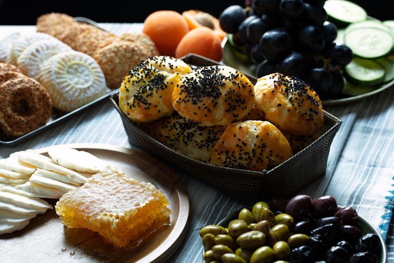 This savory, feta-stuffed bread can commonly be found as part of a Turkish breakfast spread along with cheese, olives, fruits and salads. While pogaca is traditionally made with yeast, when you're in a rush to get your suhoor meal on the table before dawn, there's no time for that. So these take a cue from biscuits and use baking powder as a shortcut leavening agent.