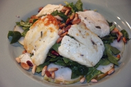 Allison Beck: Spinach with Halloumi, Pears, and Pine Nuts