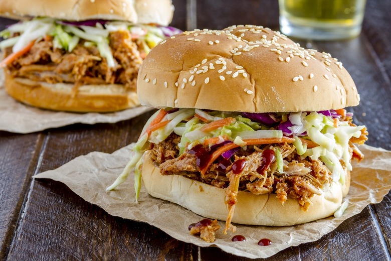 - To each bun, add a heaping portion of the pork and top with coleslaw, pickles, and an additional spoonful of BBQ sauce if needed. Enjoy immediately!