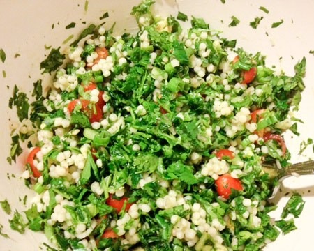- Meanwhile, combine the remaining ingredients in a bowl, seasoning to taste. Add in the cooled couscous, taste again, reseasoning as needed, and serve.