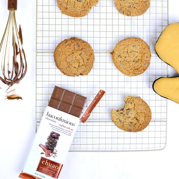 Sweetened with chocolate, brown sugar, and a bit of maple syrup, these cookies have a deep, rich flavor that could only get better with bacon. This recipe was contributed by Chuao Chocolatier.