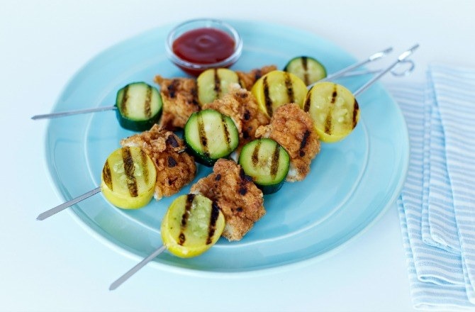 Looking for a quick and easy meal for the grill? Well, it doesn't get much better than this. Simply skewer Tyson® Crispy Chicken Strips, zucchini and squash together, grill a few minutes, then serve it with this homemade barbecue sauce. And dinner is done!