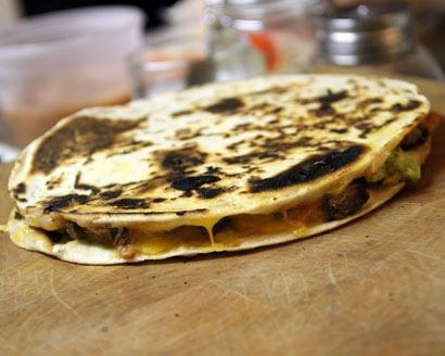 - Get your pan hot over high heat, drizzle a teaspoon of oil in, and wipe the pan with a paper towel. When the pan is really hot, add the quesadilla. Leave in until just before it starts to smoke — you want a little color, but don't want to burn it — about 20-30 seconds. Flip. Repeat. Remove. Let rest 2 minutes (that's difficult, you'll want to eat it), quarter, and enjoy.