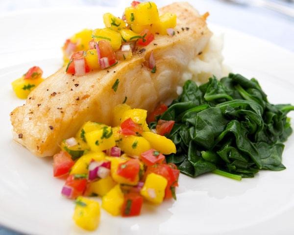 - Serve the fish with the mango salsa on top.