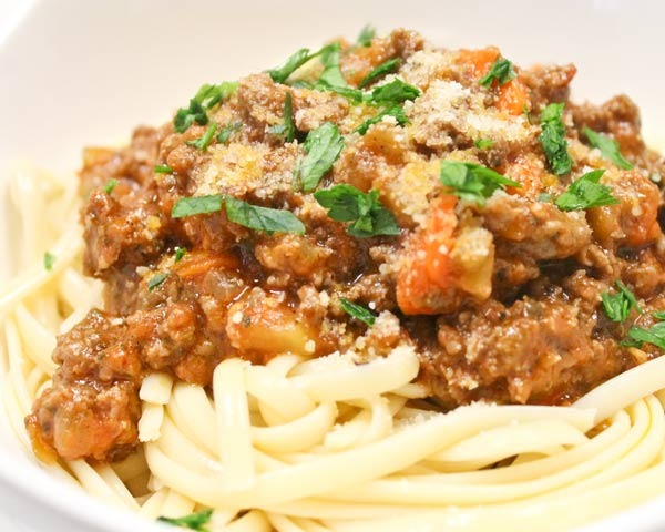 - Add the cloves, tomato paste, and half of the red wine. Simmer until the wine has evaporated, about 8-10 minutes. Add the remaining wine and tomatoes. Simmer the sauce on low, stirring frequently, until it has a medium-thick consistency, about 1 ½ hours. Season with salt and pepper, to taste. Serve topped with cooked pasta and garnished with grated cheese.