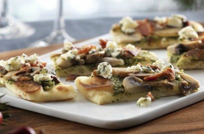 Blue Cheese, Pesto, And Mushroom Appetizer