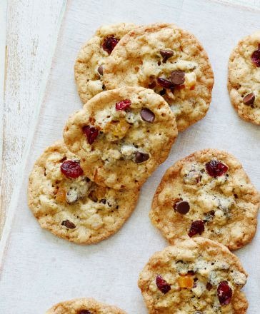 - Add the chocolate chips, dried cranberries and dried apricot pieces and mix for a few seconds until just incorporated.