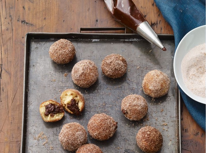 These are super for when neighbors come by to watch football. No plates or forks required. If quizzed about what they are, just say offhandedly, “Oh, plain old doughnut holes.” Then watch their faces light up as they take their first bite and the fudgy brownie flavor fills their mouths. Guaranteed high fives all around. Because the brownie filling is egg-free, it need not be baked!Recipe excerpted from Sheila G’s Butter & Chocolate: 101 Creative Sweets and Treats Using Brownie Batter by Sheila G. Mains, creator of Brownie Brittle. Click here to purchase your own copy.