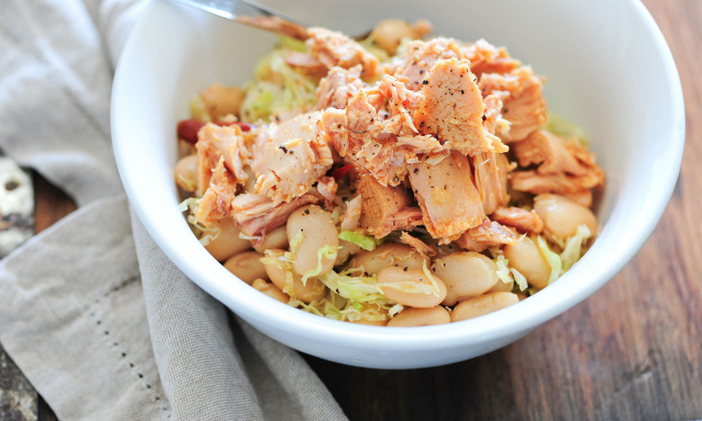 - In a large bowl, place the drained tuna, the sliced celery, butter beans, and capers. Pour the lemon-mustard vinaigrette over the salad ingredients, and toss to combine.