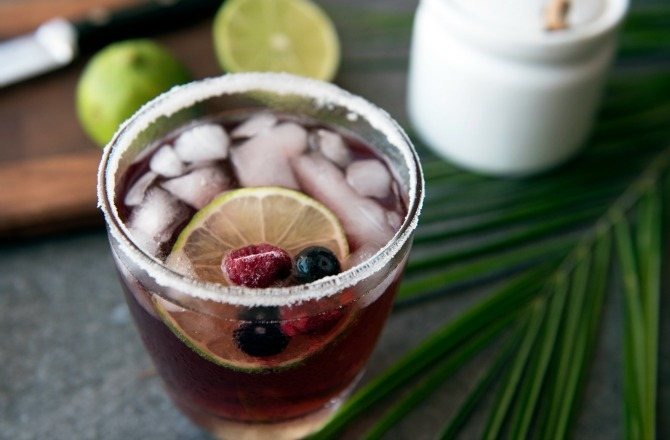 - Muddle lime in the bottom of your shaker and pour in cachaca, Amazon Energy, sugar, and a healthy handful of ice.