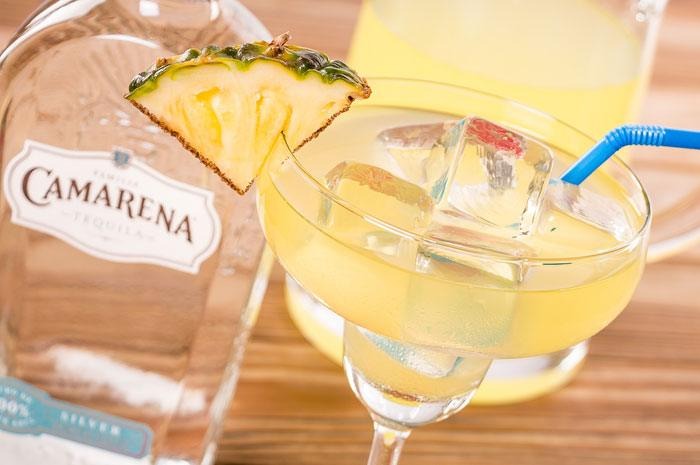 - Shake and strain over ice. Sugar rim and garnish with a spice-dusted pineapple spear.