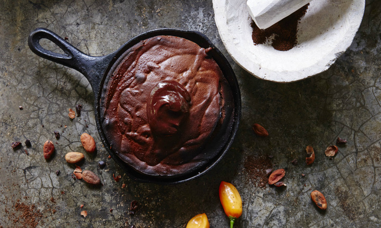 - Whisk the flour, sugar, cocoa powder, baking powder, baking soda, salt, coffee, cinnamon, allspice, and chile powders together in a medium bowl.