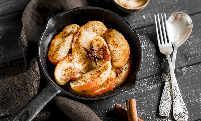 - Place apples in a slow-cooker and sprinkle cinnamon on top.