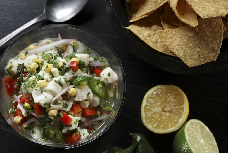 Ceviche is simply bite-sized pieces of super fresh fish fillets marinated in freshly squeezed citrus juice until the fish gets firmer and more opaque, just like if it had been cooked using heat. Simply combine all the ingredients and let them marinate until the fish is “cooked” to your liking.