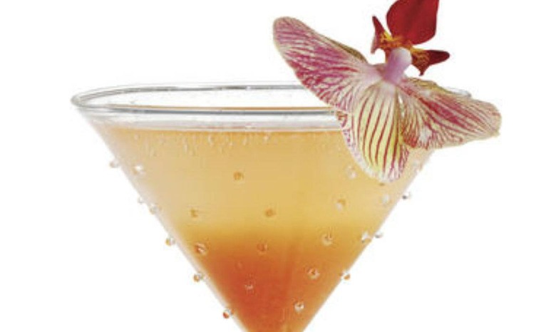 - Shake all ingredients in a cocktail shaker with ice. Pour and garnish with a flower.