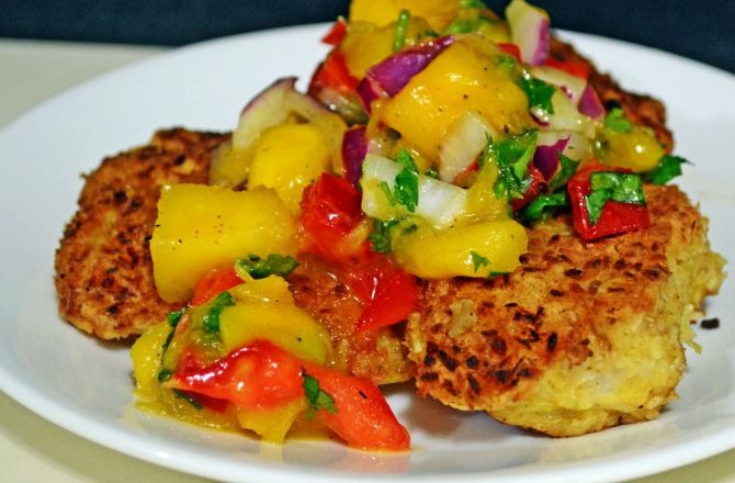 Enjoy the taste of summer with this coconut-crusted rockfish, cooked in a mix of butter and coconut oil, that's topped with a tropical mango salsa.