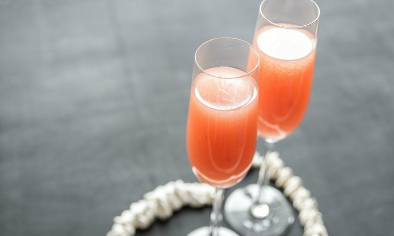 - In a pitcher, mix together one liter of chilled cranberry juice and 500 ml of chilled unsweetened orange juice. Pour into champagne flutes until they’re 1/3 full. Top with chilled champagne, sparkling wine, or club soda.