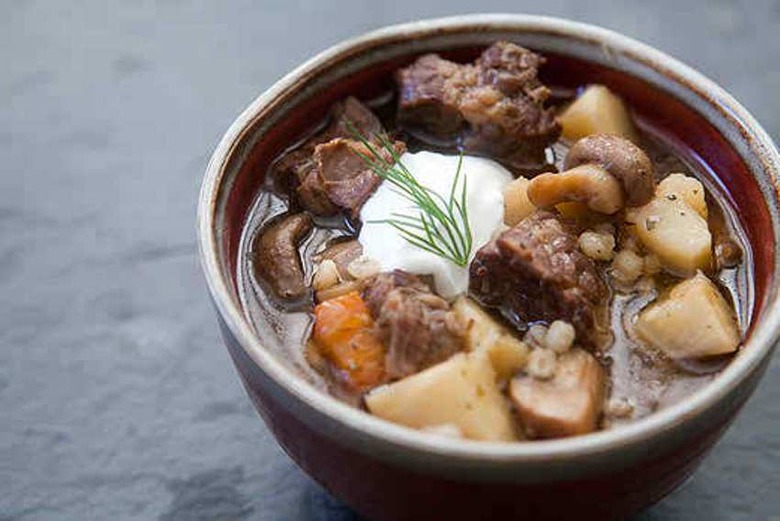 - Ladle servings into bowls, then top with a dollop of sour cream and a few sprigs of dill. Grind a little black pepper over right before you serve. To eat, stir in the sour cream.