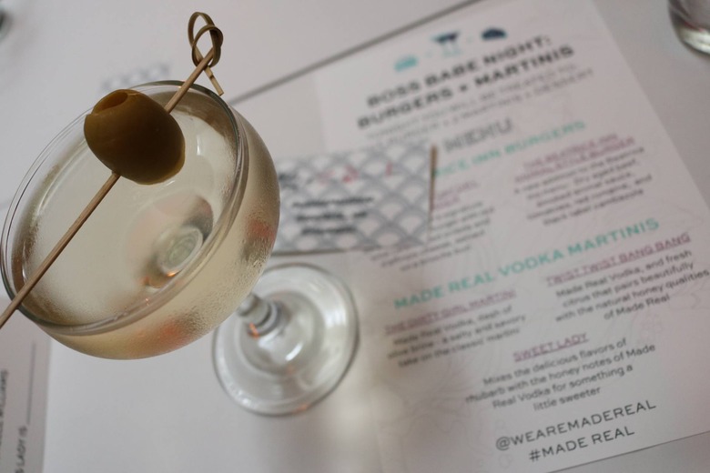 - Add Made Real, olive brine, and dry vermouth to a mixing glass filled with cracked ice. Stir carefully to thoroughly chill the mixture. Strain into a chilled coup and garnish with 3 olives.