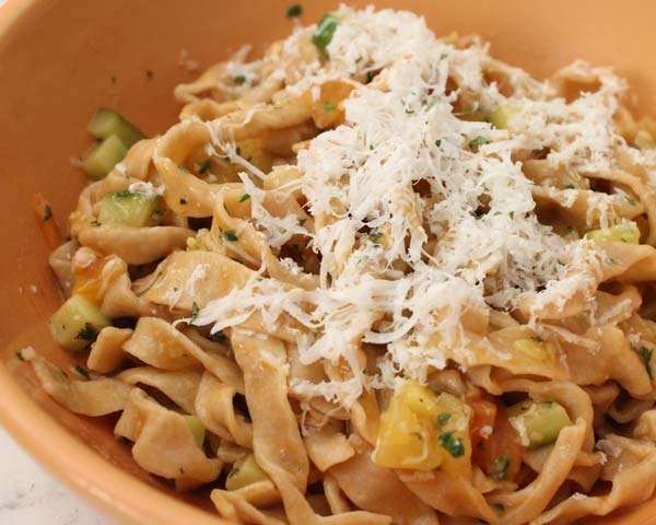 Dish With Diane: Chef Ben Lee's Whole Wheat Tagliatelle With Cherry Tomatoes, Summer Squash, And Mixed Herbs