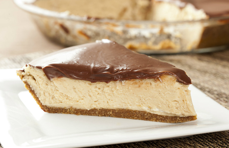 - Combine the cream cheese, ¾ cup confectioners’ sugar, and creamy peanut butter in a bowl. Beat with a hand mixer until light and fluffy, about 5 minutes. Whip the cream with the remaining confectioners’ sugar and vanilla extract to stiff peaks. Fold the whipped cream into the peanut butter and cream cheese mixture. Spread evenly in the cooled pie shell, and freeze for at least 4 hours. Drizzle chocolate fudge sauce over the pie before slicing and serving.