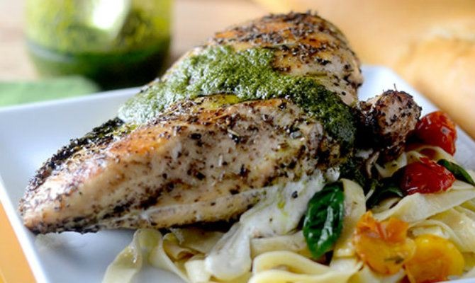 - Combine the oil, salt, pepper, and oregano in a bowl and mix well. Place the chicken in a deep container and pour the marinade on the chicken. Rub the marinade in the chicken. Let marinade for 2 hours or overnight. Heat an outdoor grill on medium heat. Remove the chicken from the fridge and let warm up for 20 to 30 minutes.