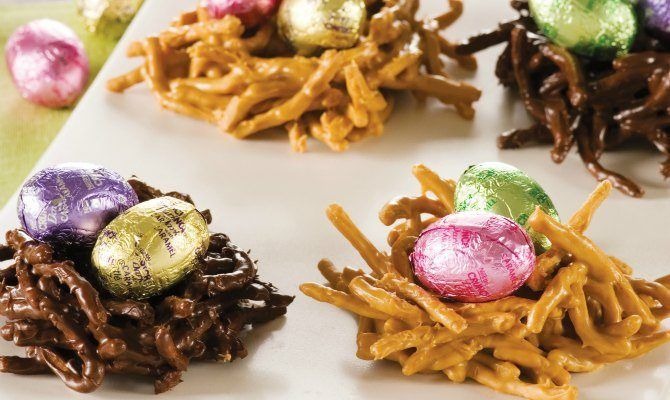 These easy-to-make treats are perfect for Easter; they’re fun, kid-friendly, and just the right size for holding Nestlé’s NestEgg chocolate candies. Whatever flavors you choose to use, these sweet and crunchy candies are sure to please.Click here for more Easter recipes.