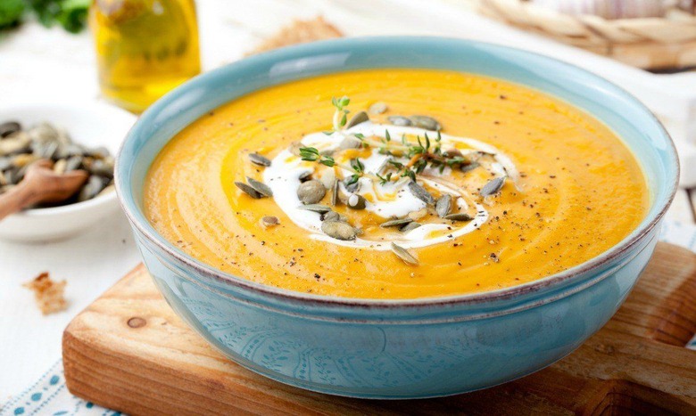 Instead of the stuffing and gravy, have you ever thought about serving pumpkin soup during the holidays? This recipe can be cooked in a slow-cooker and made during the course of the day to save time.