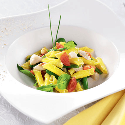 Garganelli Pasta With Scallops, Tomatoes And Green Beans