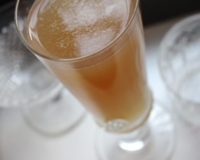 - Combine the cognac, orange liqueur, apple juice, and bitters in a cocktail tin with ice. Shake and strain into a glass, then top with a splash of ginger beer.