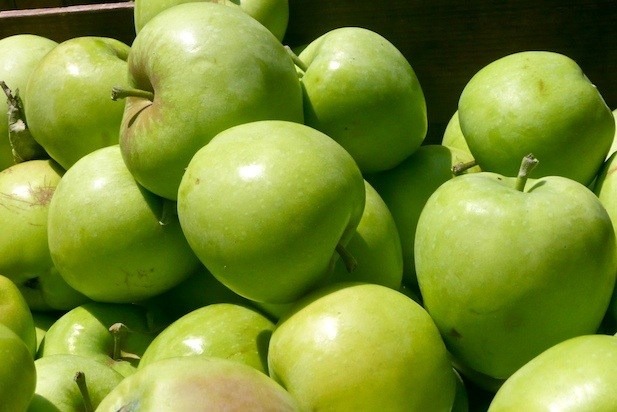 Since michy's restaurant in Miami only has a beer and wine liscence, Bar Manager Will Rivas has cleverly come up with a special menu of "light cocktails" that contain less than 22% alcohol. This one features tart and sweet flavors, combining freshly muddled green apples, maple syrup and sherry.