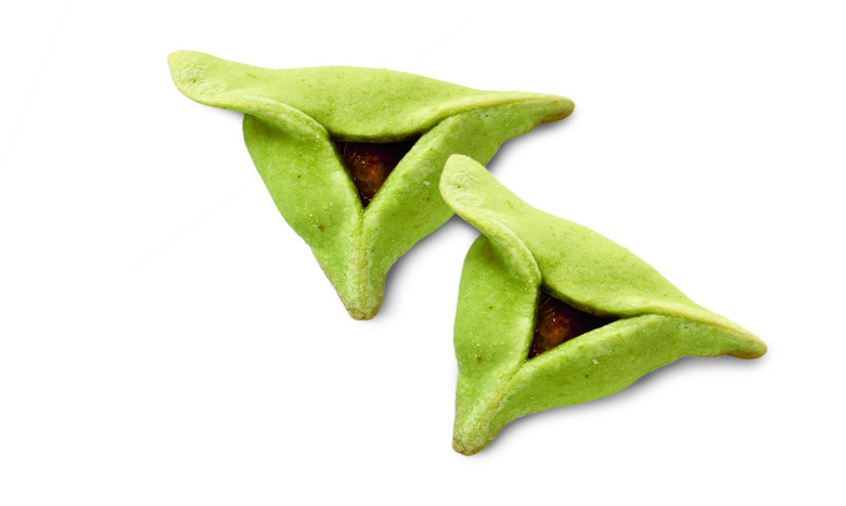 When I was visiting Paris in 2011, I saw macarons, chocolate candies, and even cakes made with green tea powder (matcha). Green tea is an antioxidant and believed to reduce the risks of cancer and heart disease, so this is a hamantaschen that is also good for you. I fill these with apricot jam, but you can substitute any flavor you like. You can find kosher-certified green tea powder (matcha) online.
