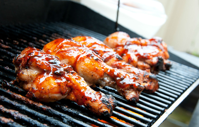 - Heat the grill. Place the chicken on the grill, brush with the glaze, and cook for about 2 minutes. Flip the chicken, and brush the other side with glaze. Continue to flip and brush with glaze every 4 minutes, until the chicken is cooked through, about 20-25 minutes. Transfer chicken to a serving platter and sprinkle with chopped cilantro.