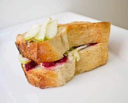 The French twist is a lighter take on the classic grilled cheese. Combining the cheese with apple slices adds a crunchy and juicy dimension to the sandwich, while the cranberry sauce lightly sweetens the savory and rich Brie. The grilled Brie, apple and cranberry sandwich is delicious all year but particularly in the spring and summer. See all sandwich recipes.
