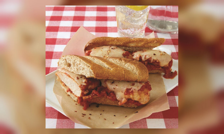 - Using a spatula, remove the chicken Parm from the oven and place on a toasted roll