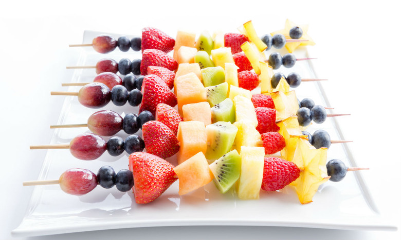 - Thread the fruit on to the soaked skewers. Place the skewers on the grill and cook directly over medium-high heat for 1 ½ minutes on each side, until golden and caramelized. Serve warm.