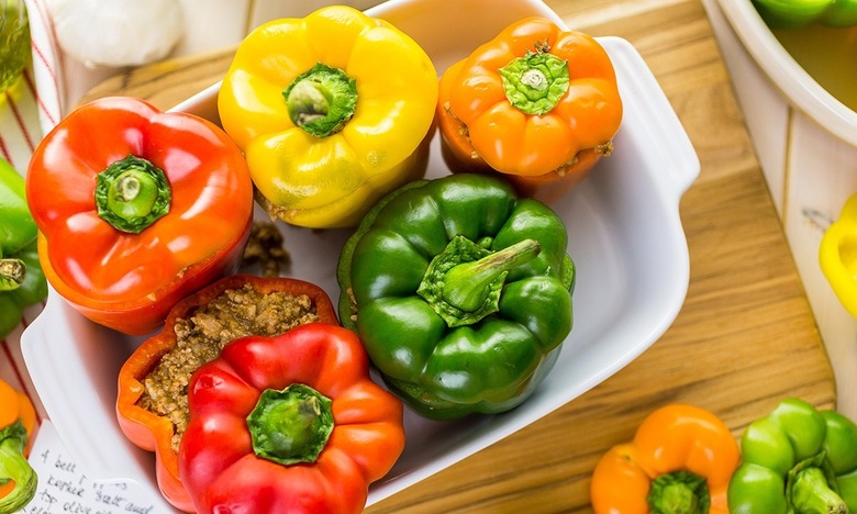- 2 green bell peppers, de-seeded and sliced in half
