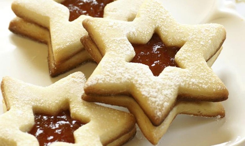 - Allow them to cool completely before filling with jam. Heat jam in a small saucepan until warm, brush bottom star cookie with jam, place cutout star cookie on top and fill center star cutout with more jam. Dust with powdered sugar if desired. Allow to cool completely before storing.