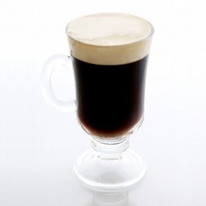 - Add the whiskey and syrup to an Irish Coffee glass and fill 2/3 of the way with coffee. Top with 1 inch of whipped cream.