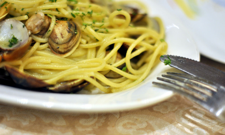 Clams, spaghetti, and plenty of parsley are quickly cooked together for an impressive Venetian dinner.This recipe is courtesy of Jamie Oliver.
