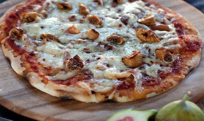 - Before you light the grill, spray olive oil over grill, being sure to cover well. Once grill is hot, gently lay the dough, stretched out already, on the grill. Cook for 3 minutes or until crust starts to brown slightly, then flip. In a separate bowl, mix crushed tomatoes, adding in salt, pepper and fresh basil to taste. Lay tomato mixture and Jarlsberg cheese on top of crust, and scatter some fresh, sliced figs. Cover for 4-5 minutes, until cheese is melted.