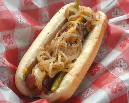 The additional accoutrements that I serve with my Kobe Bad Ass Dog is what makes it so special. My onion jam adds a great depth flavor to a usually boring ketchup-and-mustard hot dog, and my angry onions are the perfect crunch.