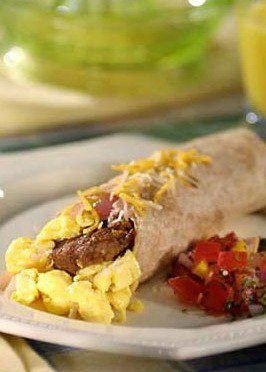 - Combine Gimme Lean® Sausage and egg mixture and place on flour tortilla, sprinkle cheese on top and roll into a burrito. Serve with salsa.