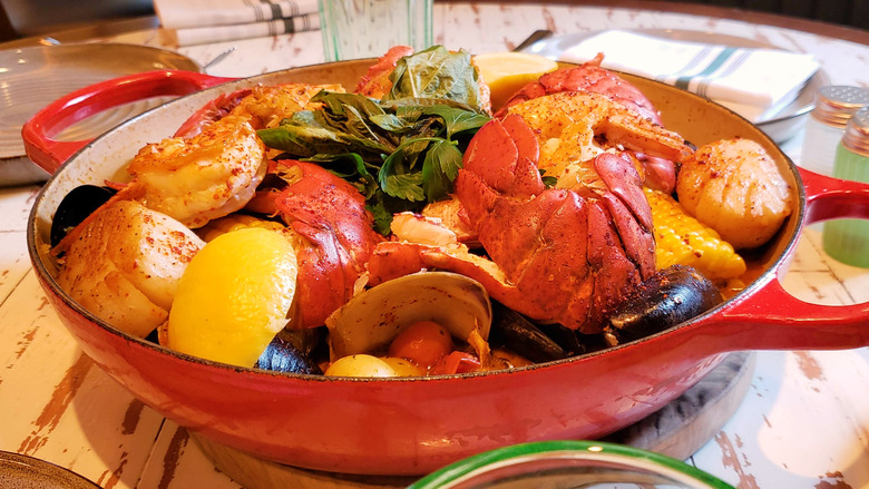 NYC’s Legasea Seafood Brasserie at Moxy Times Square serves their “Legasea Great Big Lobster Bake” nightly all summer-long and as the star of their new Sunday family-style dinner menu since it's perfect for sharing! The recipe, developed by Chef Jason Hall, is packed with seafood and made with a flavorful tomato sauce. Cook the poatoes, corn, scallops, shrimp and lobster ahead of time to make it the perfect party-dish.Pro tip: Serve with a crusty bread to sop up the leftover sauce!Watch this recipe video and follow along at home!